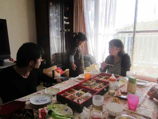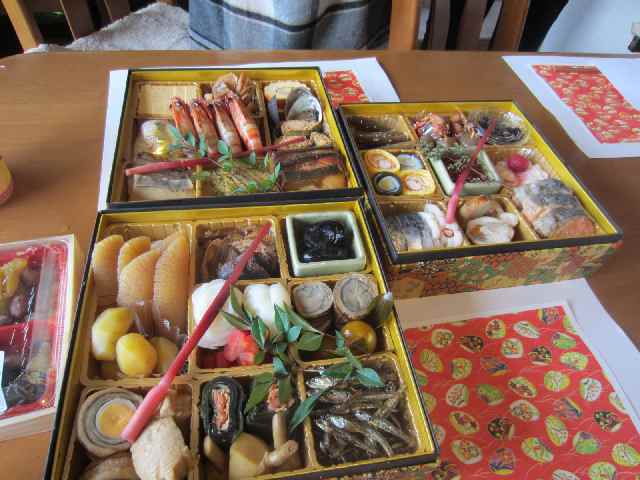 今年は、おせち料理を初めてセットで購入しました。つまり、3段重ねのお重を購入しました。次女の勤めているスーパーマーケットで豪華な順から数えて「鶴」「亀」「姫」というランクがあるのですが、2番目の「亀」を注文しました。ちょっと贅沢だな・・・とは思いましたが、2日には妻の親族が集まるというので、奮発したわけでもあります。そして、次女のスーパーでの売り上げにも貢献するわけだし一石二鳥の心理的な効果と経済効果がありました。